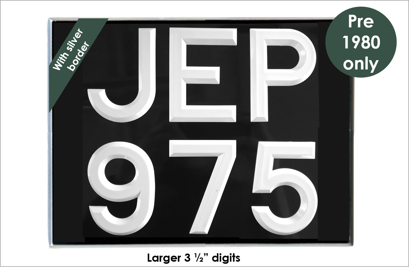 Square 11 3/4 x 8 3/4" with 3 1/2" white peak digits and silver bevel