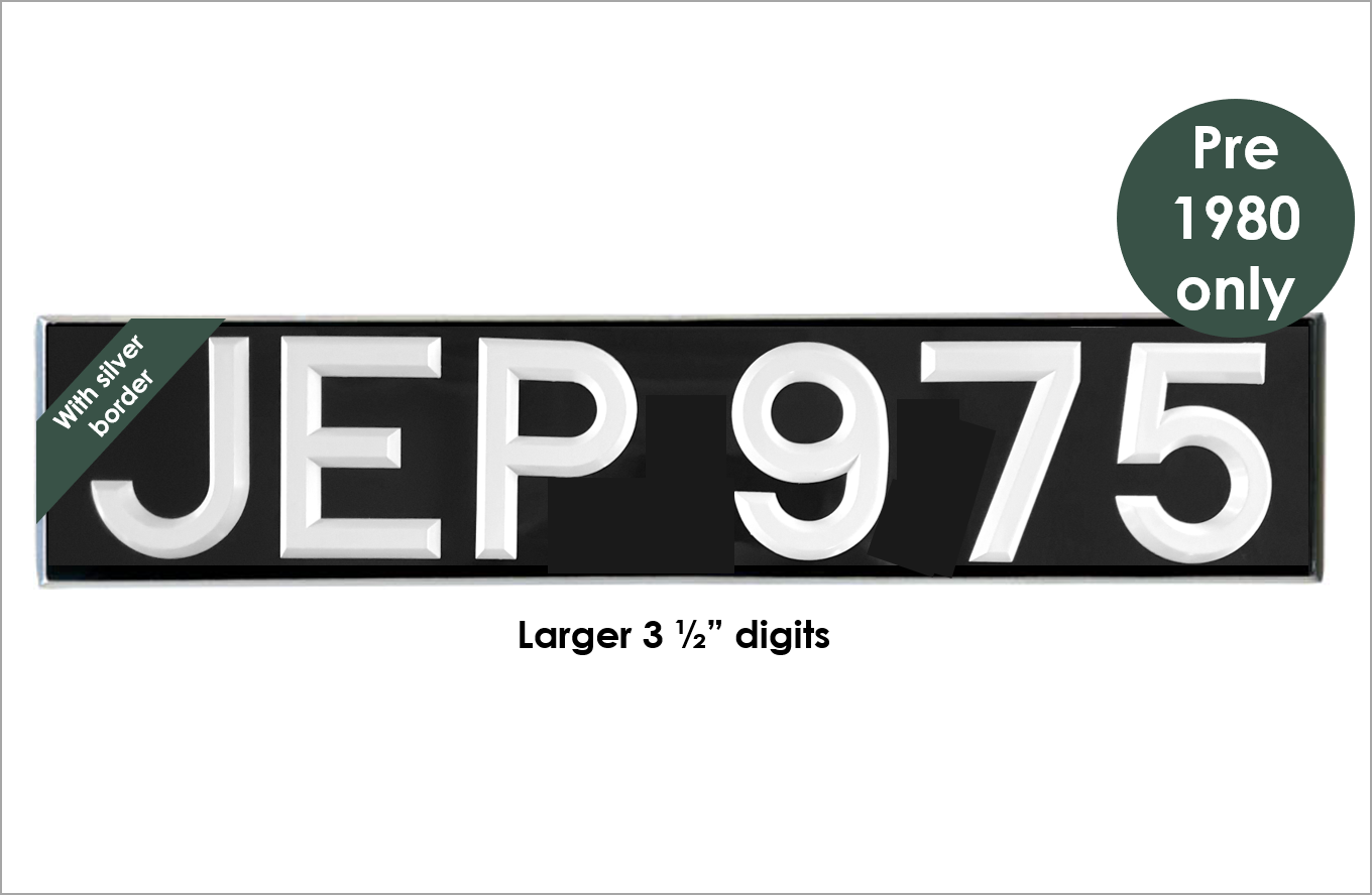 Oblong 20 1/2 x 4 1/2" with 3 1/2" white peak digits and silver bevel
